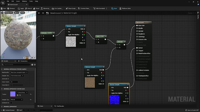 Below we will add a texture sample, we will need this for the macro variation the macro variation itself is an adjustment to the settings in the multiply